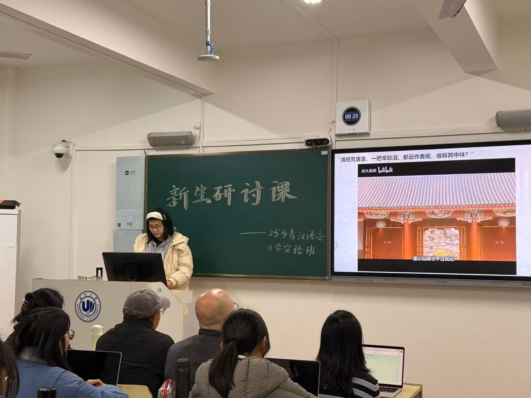 汉语言班展演现场,同学们围绕中国古代文学、现当代文学、外国文学及语言学四大方向展开深度汇报;抖阴