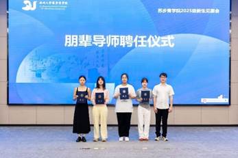 见面会还特别设置了朋辈导师聘任与同辈科研结对仪式。学院为2025级各班班助及2024级科研朋辈代表颁发聘书,通过“以老带新、科研结对”的方式,构建全方位育人体系,激发新生的学习动力与科研兴趣。