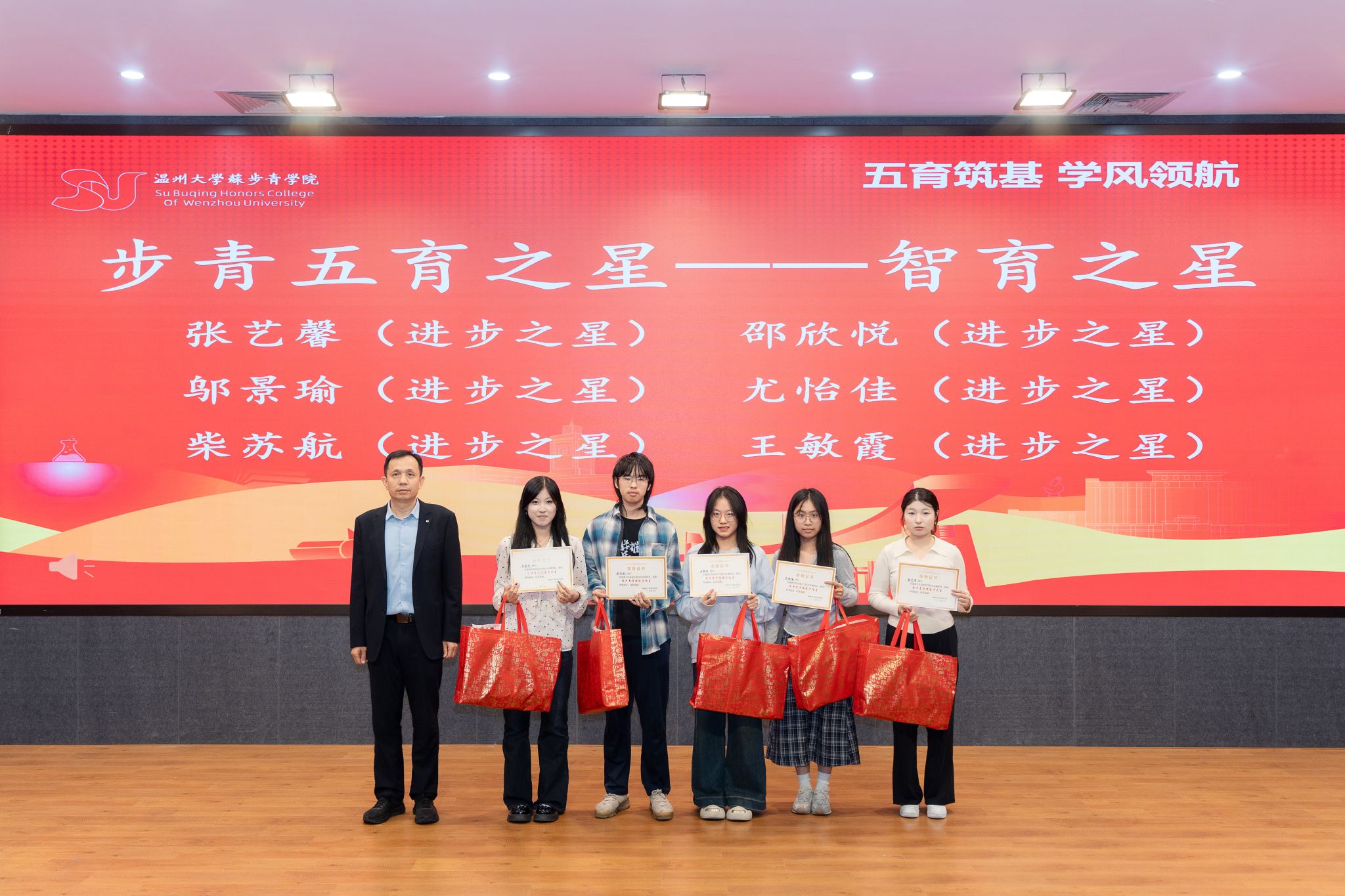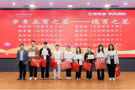 本次表彰大会共有五个议程,授予“德育之星,智育之星,体育之星,美育之星,劳育之星”五种奖项。在智育方面,除了个人奖,23抖阴