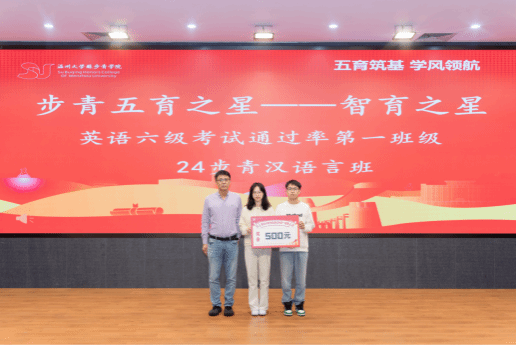 汉语言班在本次英语六级考试中,通过率全院第一,特给予奖励。